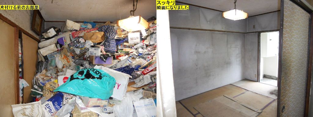 ●ゴミ屋敷片付け作業前(ビフォー)→片付け作業後(アフター)